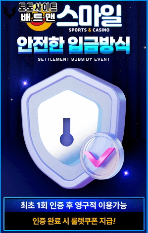 스마일 토토는 국내 최고의 신뢰도를 자랑하는 검증 전문기업 배트맨의 엄격하고 정밀한 심사를 통해 공인된 최상위 안전 배팅 플랫폼입니다. 배트맨이 자체 개발한 고도화된 검증 시스템은 다년간의 노하우를 바탕으로 먹튀 위험 요소를 철저하게 분석하고 차단하며, 스마일 토토는 자금 운용의 안정성과 운영 전반의 투명성을 완벽히 입증받았습니다. 이러한 검증 결과는 단순한 인증을 넘어, 실제 이용자들에게 실질적인 안전성을 제공하는 확실한 기반이 됩니다.