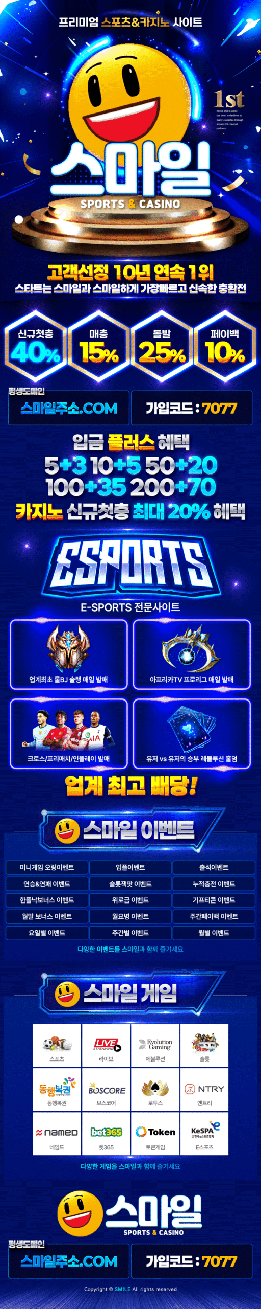 이처럼 스마일 토토는 단순한 배팅 사이트를 넘어, 신뢰와 안전, 편의성과 즐거움이 공존하는 종합 엔터테인먼트 플랫폼으로 자리매김하고 있습니다. 고객 한 분 한 분의 소중한 경험을 최우선으로 생각하며, 늘 더 나은 서비스를 제공하기 위해 전 직원이 함께 고민하고 성장하고 있습니다.